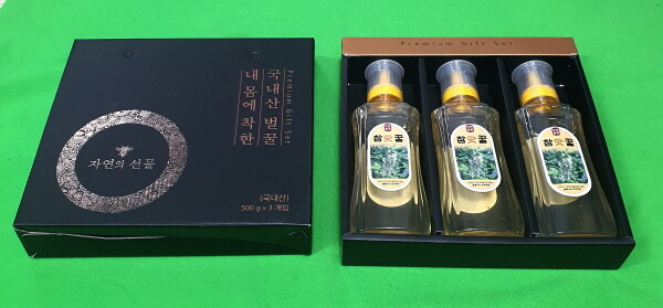 천연벌꿀 500g을 세개씩 포장해서 부담없는 가격으로 구입하시어 선물하실 수 있는 제품입니다.
