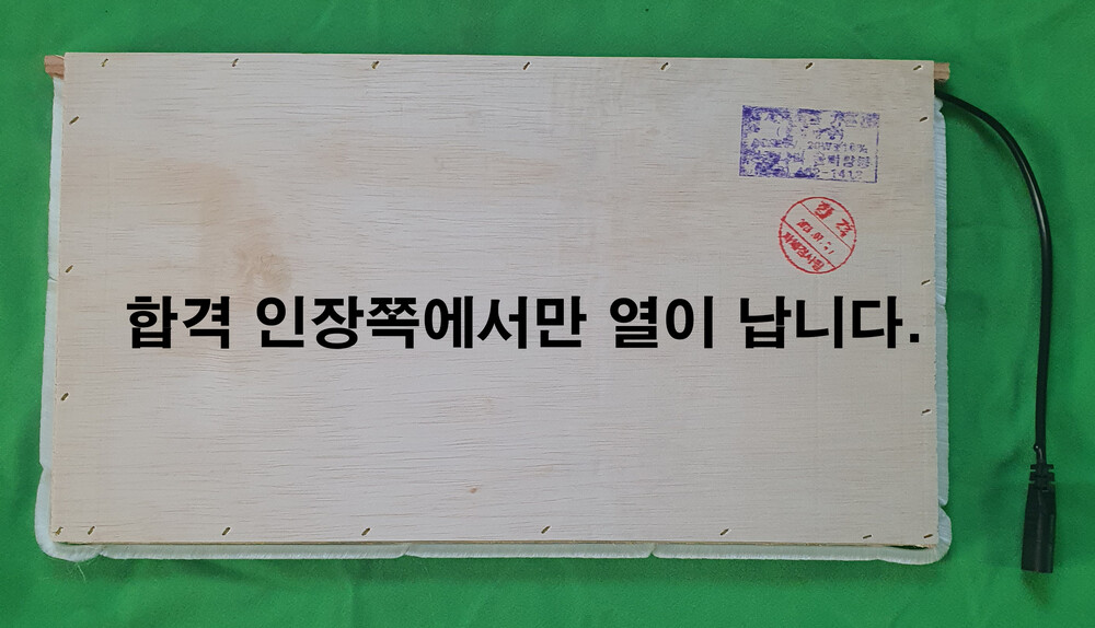 0. 이 전기가온판은 약 20W(±10%)의 전력을 소비합니다. 봉장의 전기용량을 참조하시어 설치 하시기 바랍니다. 0. 가온판은 스탬프가 찍혀 있는 쪽이 열이 나는 곳입니다. 설치시 방향을 확인하시고 설치하십시요